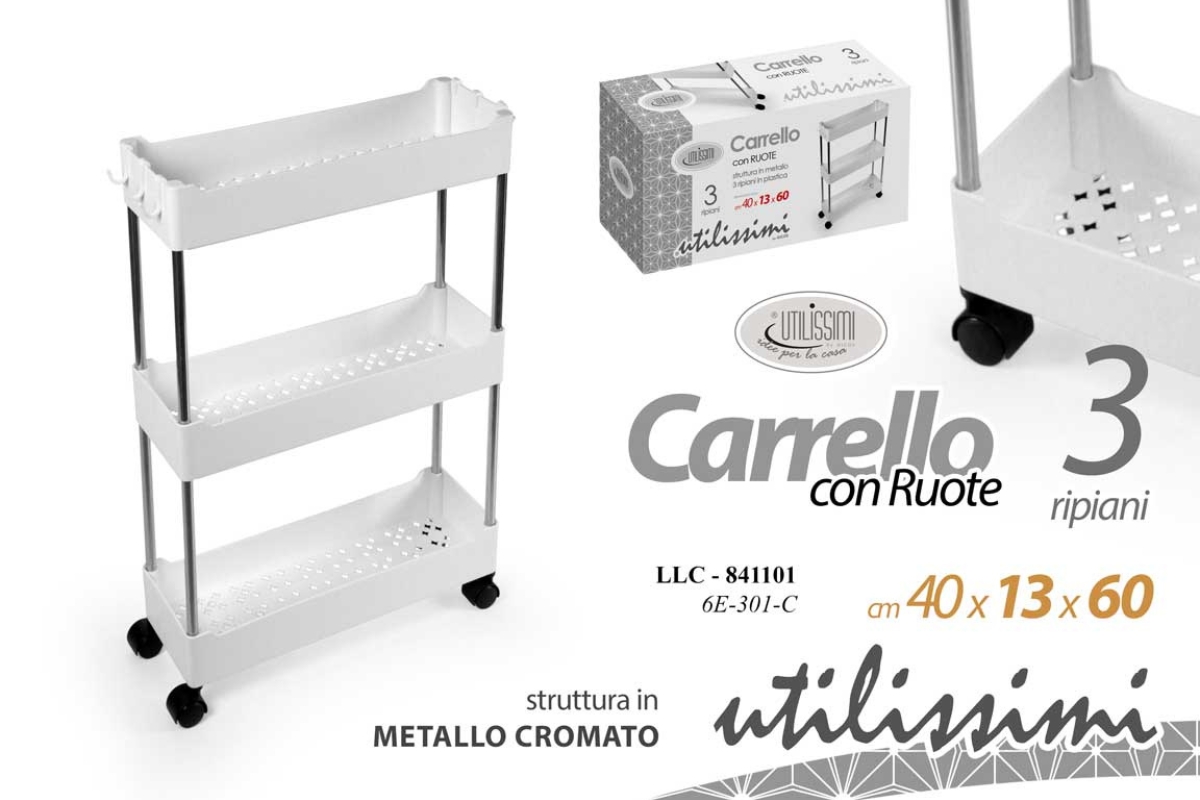 Il carrello a 3 piani Otello è un complemento salvaspazio da utilizzare in qualsiasi ambiente.