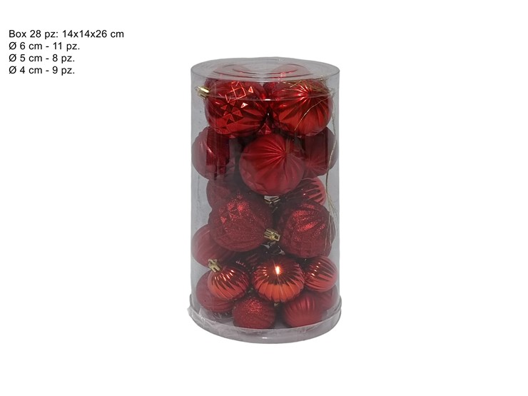 PALLE 6/5/4 CM ROSSE 28 PZ ASS. IN BOX PVC