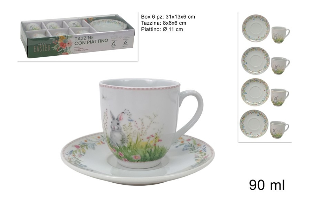 TAGLIERE LEGNO CONIGLIO CON DECORO CERAMICA 6ASS